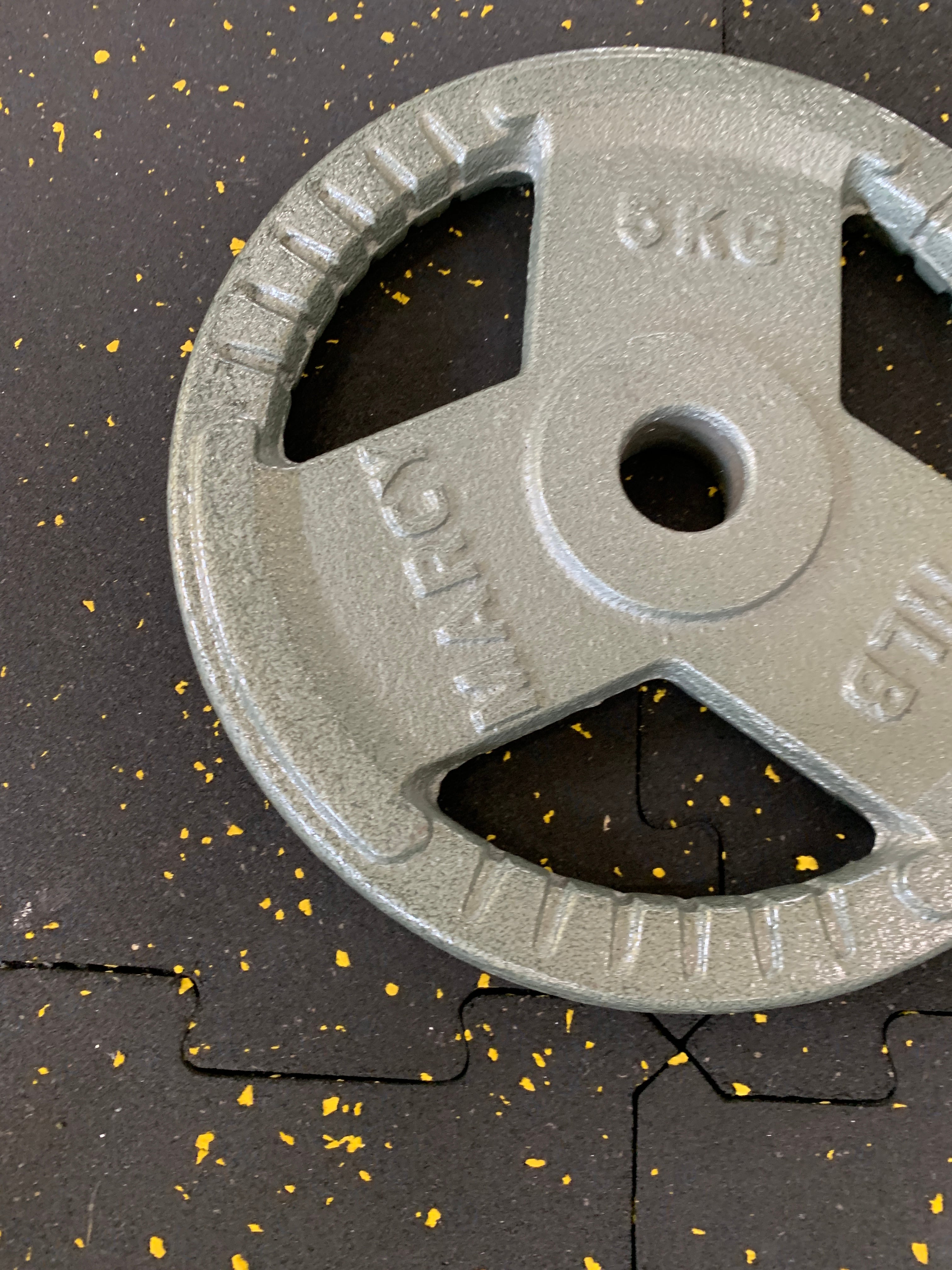 使いやすい3グリップアイアンプレート *写真は同型のプレートです 20kg2枚 15㎏2枚 10㎏2枚 5㎏2枚 2.5㎏2枚 計 105㎏